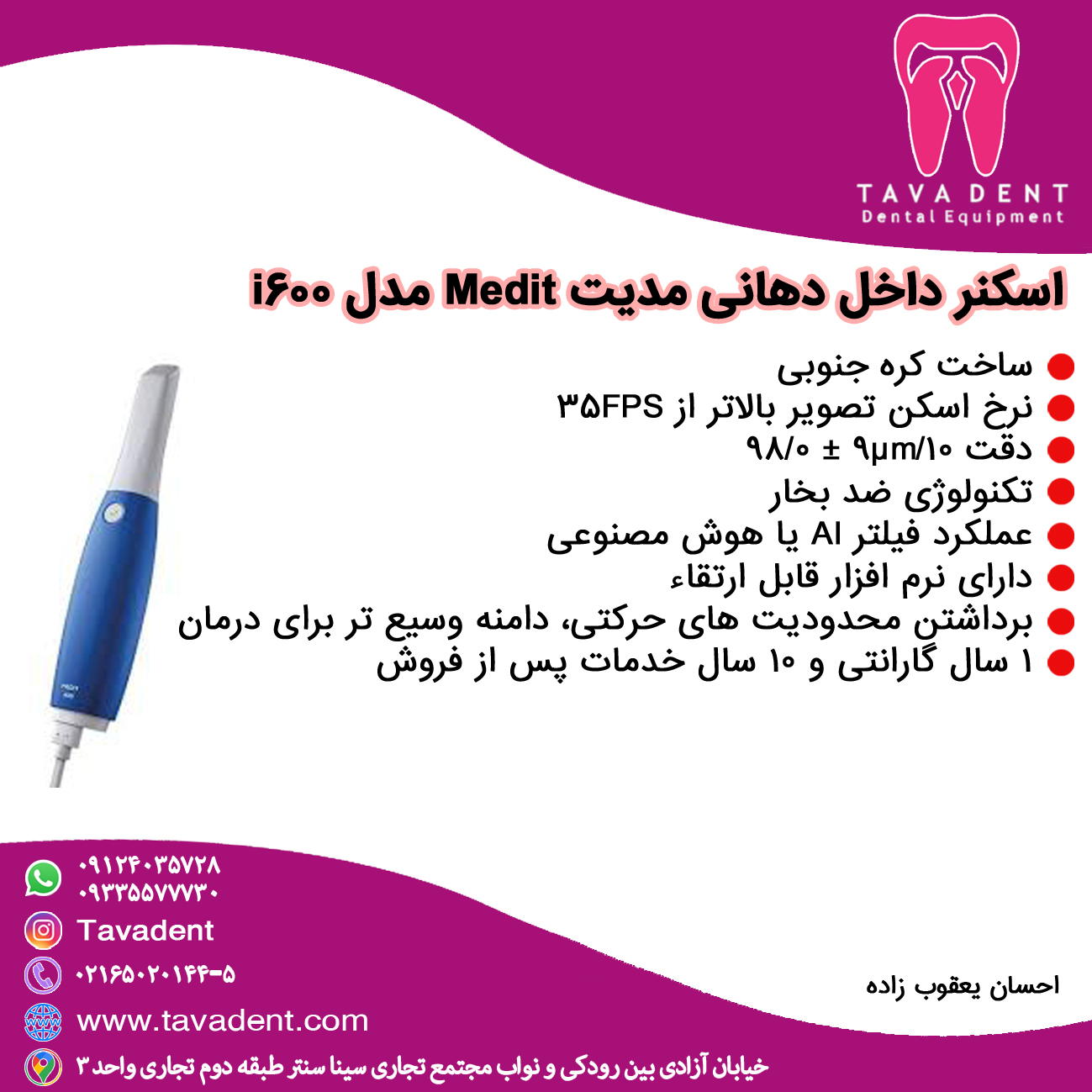 | نام دستگاه | اسکنر داخل دهانی مدیت Medit |