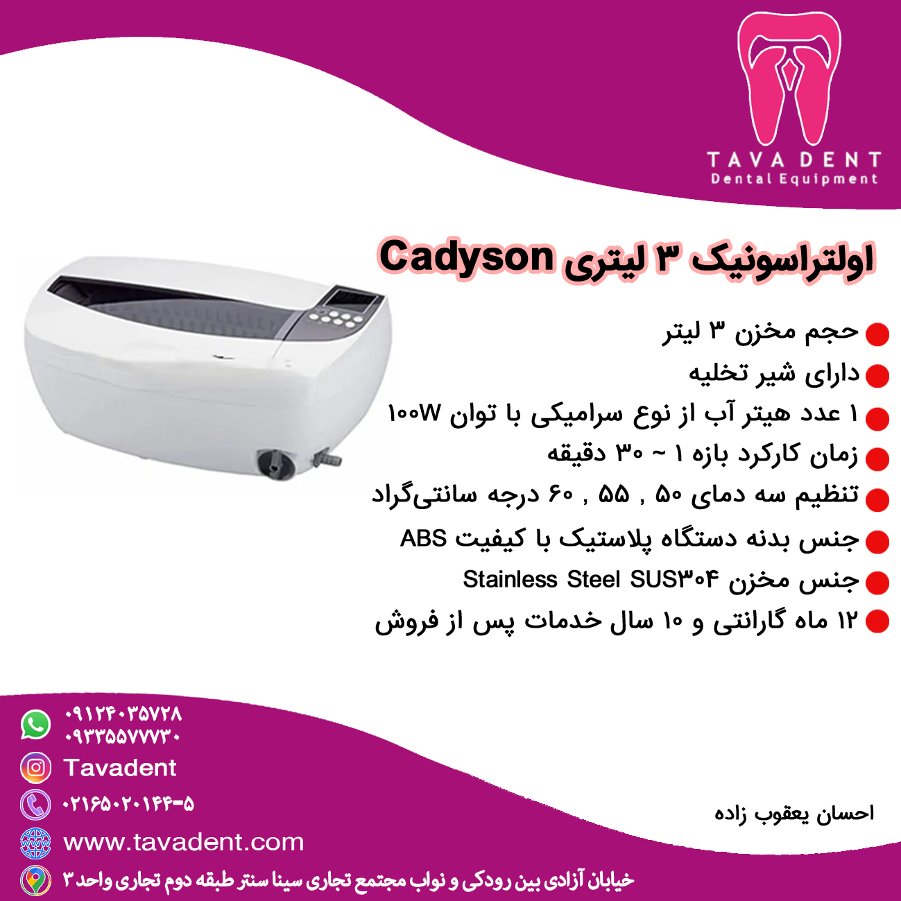 | سایر ویژگی ها | _ مجهز به هشدار تعویض محلول _مجهز به تکنولوژی حذف گاز _دارای هیتر _دارای فن خنک کننده _دارای شیر تخلیه |